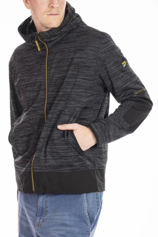 Lengvas džemperis su gobtuvu pagamintas iš tamsiai pilkos spalvos mikrofliso. Alkūnės sustiprintos juodu mikropluoštu. 2 priekinės užsegamos kišenės. Modernus užtrauktuko dizainas su elastiniu apvadu, kad geriau priglustų. Kontrastinis susiuvimas. 3D guminė Rica Lewis logotipo aplikacija ant rankovės.