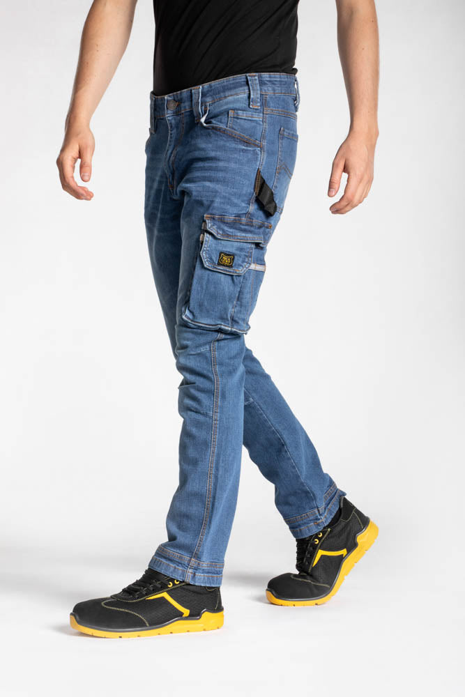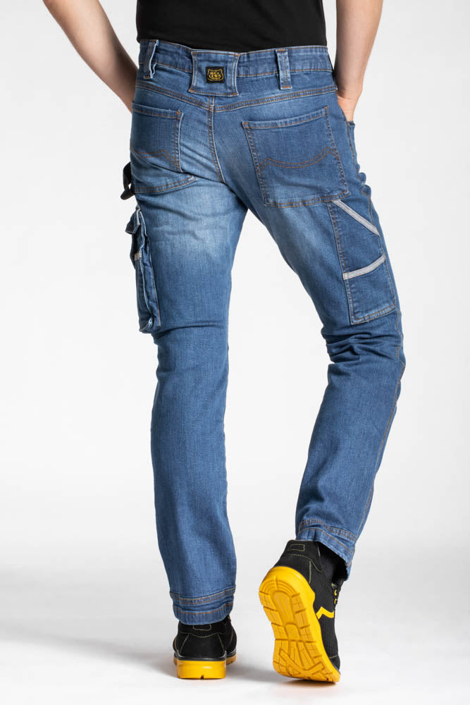 JOB džinsai prisitaiko prie juosmens kiekviename judesyje, kadangi jie yra su dvigubu apvadu ir sustiprintomis klostėmis, kurios apsaugo kelius net ir nepatogiausiose padėtyse.