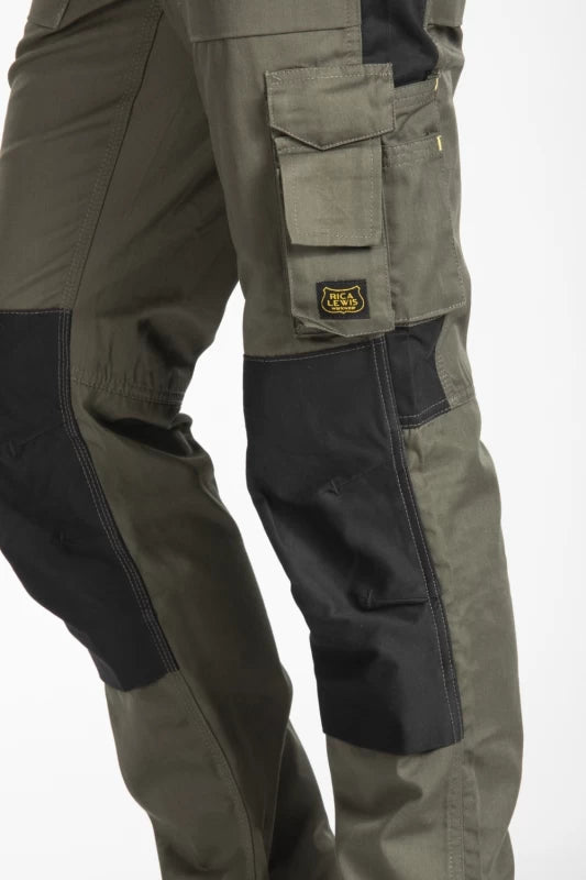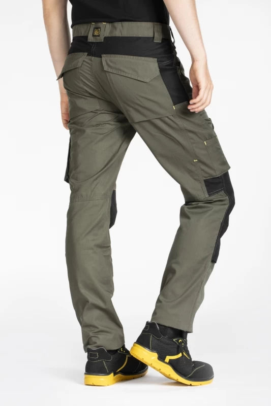 Ilgos įprasto kirpimo kelnės aukštu juosmeniu su užtrauktuku, didelėmis kišenėmis, telefono kišene ir galinėmis kišenėmis.